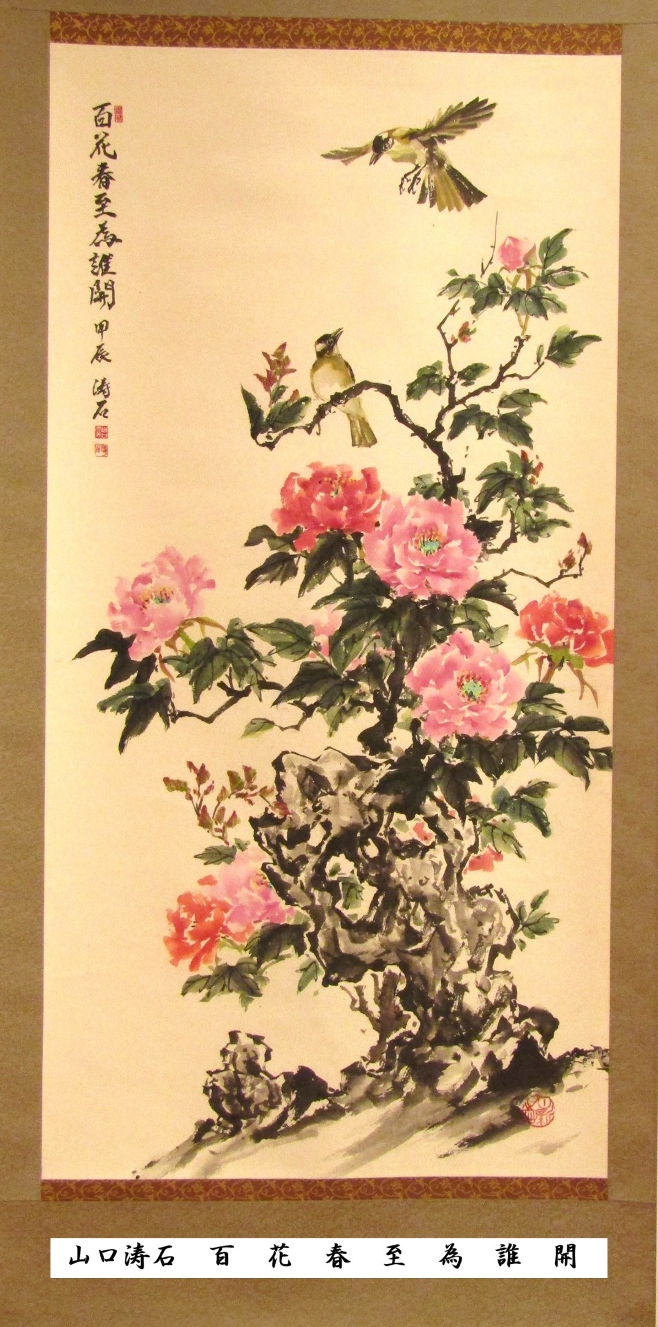 「小林石雲」(会員)山梨の人。(中間南画会)山梨の神官の家に生まれ、南画を谷文晁系の「児玉果亭」の門に学び、漢学を「二松学舎」に、漢詩を「二島中州」に従って能くし、禅学を「新井石禅」に従い、茶、華道を嗜んで花鳥山水人物を能くして石竹を得意とし、南画発展普及に努力しています。その高い教養と文人生活は接する人に多大の影響を与えました。